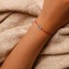 Un cordon rouge raffiné, mettant en valeur trois zircons sertis à clos. Inspiré par la lune, le zircon central, plus grand, est encadré par deux plus petits, créant une harmonie parfaite.